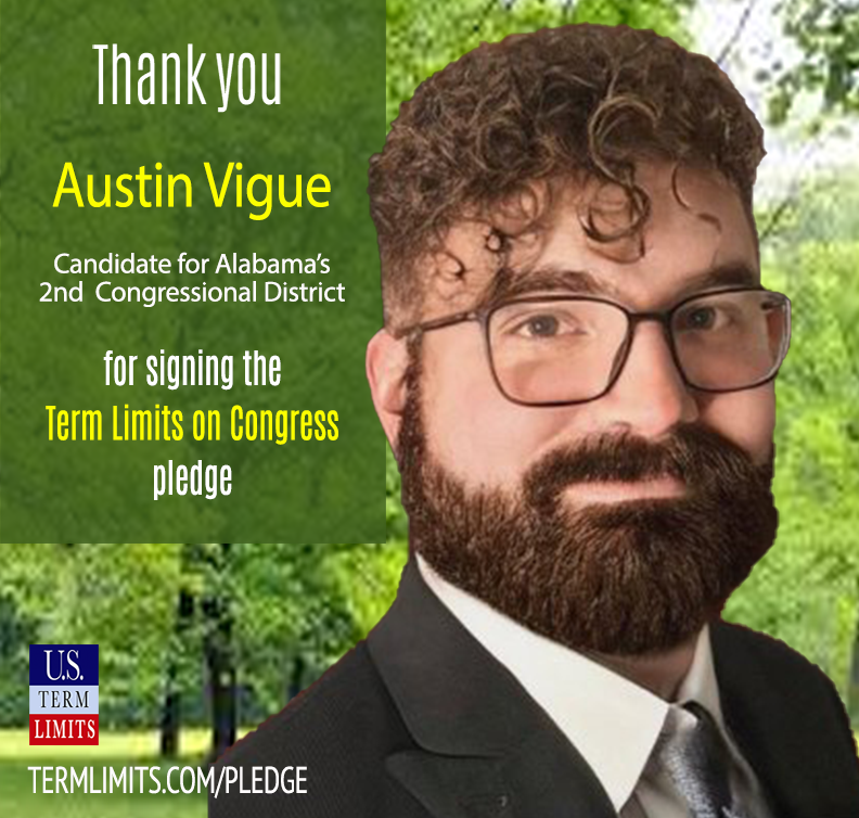 The U.S. Term Limits amendment pledge is provided to every announced candidate for federal office. It reads, “I pledge that as a member of Congress, I will cosponsor and vote for the U.S. Term Limits amendment of three (3) two-year House terms and two (2) six-year Senate terms and no longer limit.”