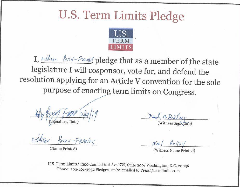 Addison Perry-Franks Pledges To Support Congressional Term Limits
