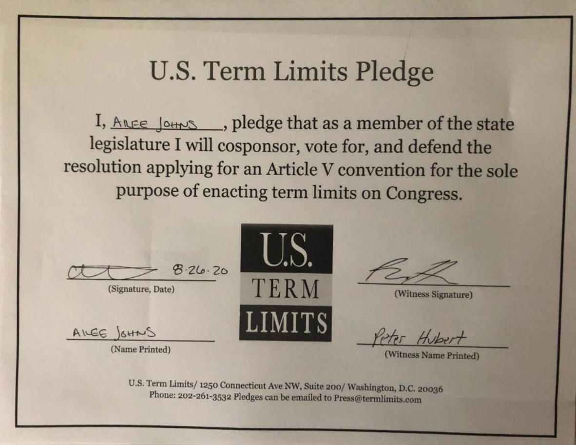 Ailee Johns Pledges to Support Congressional Term Limits