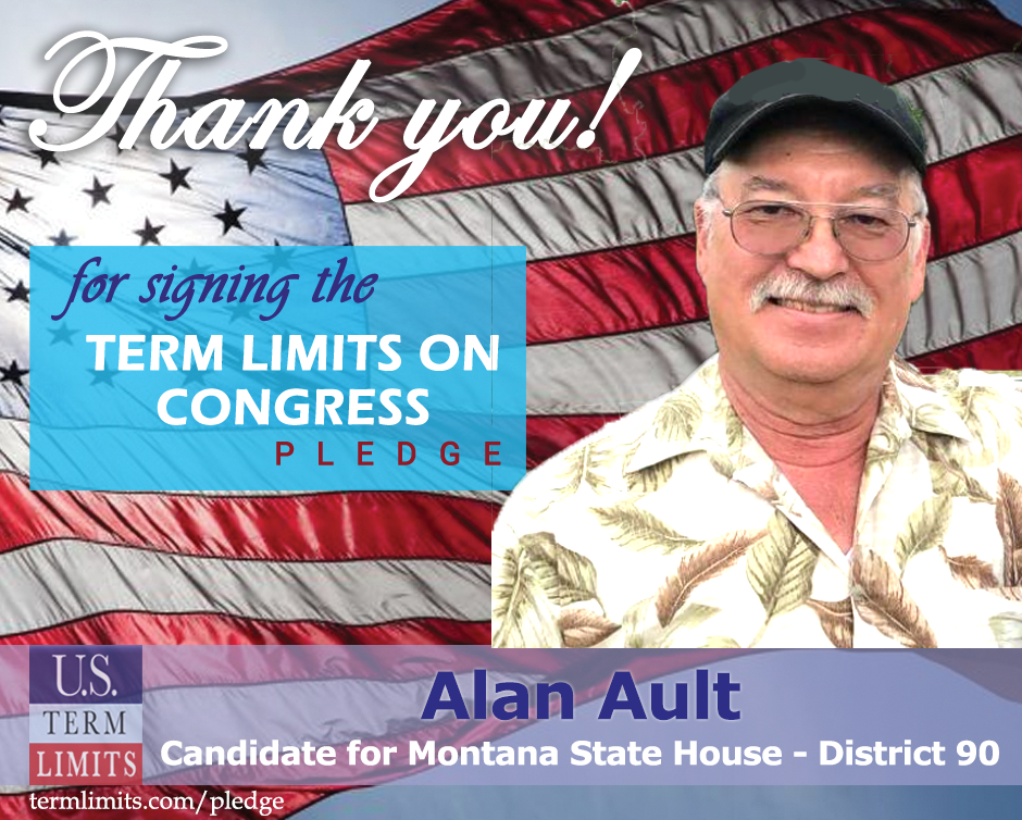 Missoula, MT – U.S. Term Limits (USTL), the leader in the national, non-partisan movement to limit terms for elected officials, is gathering support from state lawmakers across the nation. Its mission is to get 34 states to apply for an amendment proposal convention specific to term limits on Congress. Montana state house candidate, Alan Ault (district 90) has committed support for term limits on Congress by signing the Term Limits Convention pledge.