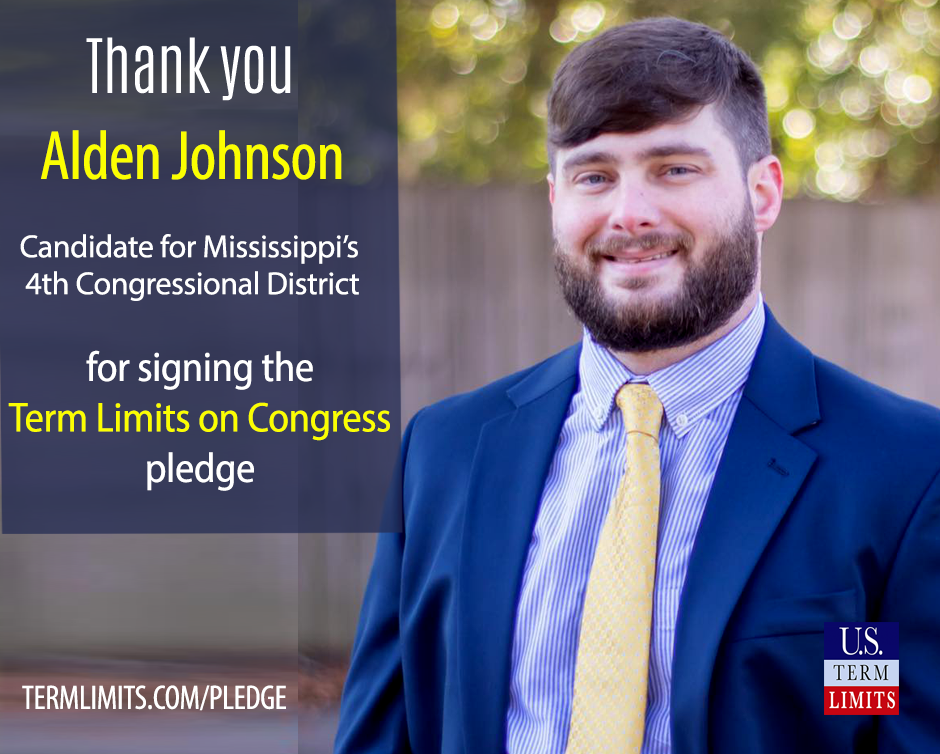 Washington D.C. – U.S. Term Limits (USTL), the leader in the non-partisan national movement to limit terms for elected officials, praises 2022 U.S. house candidate for Mississippi,  (district 4), Alden Johnson for signing the pledge for an amendment to term limit Congress. Previously, candidate Graham Hudson also signed the pledge.