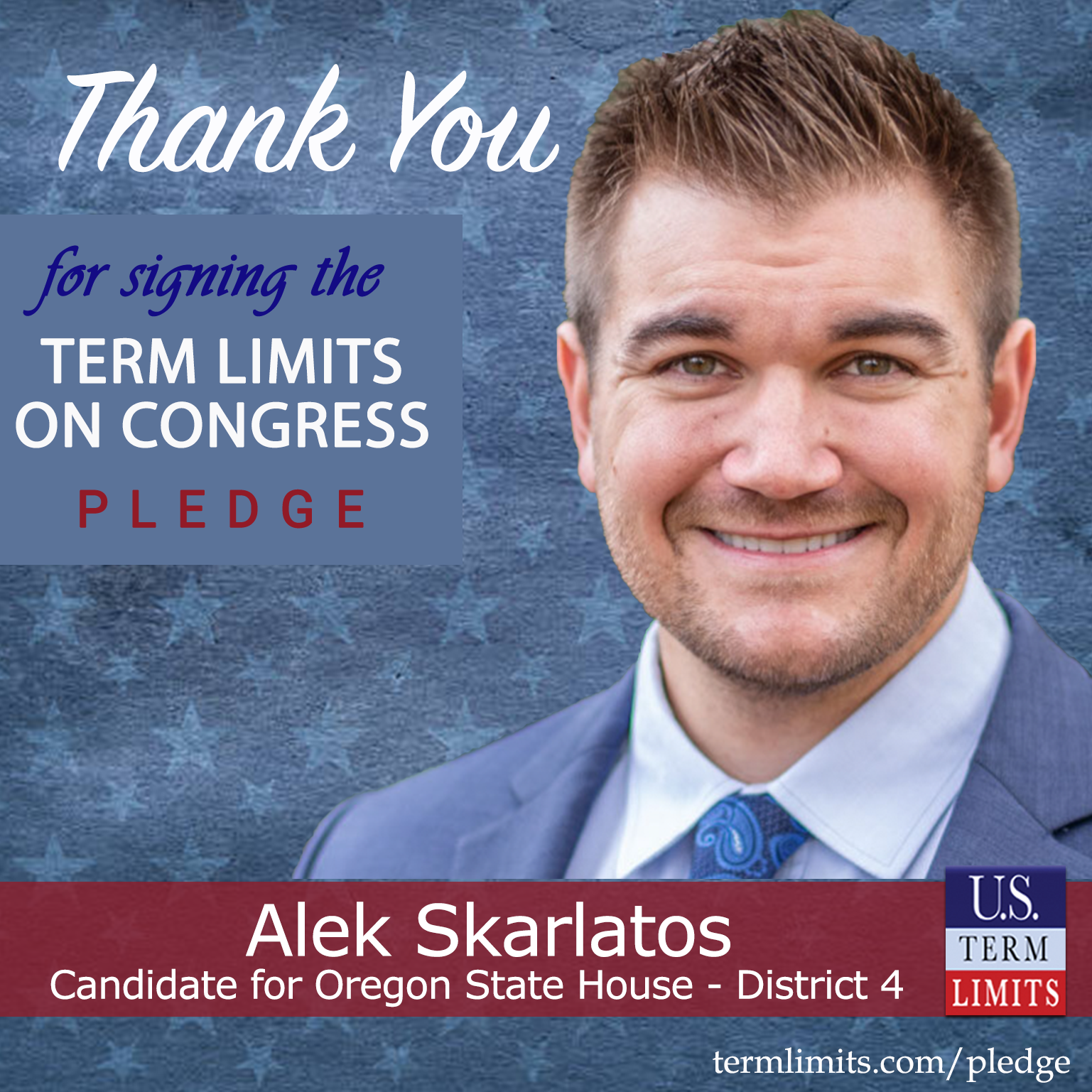 Medford, OR – U.S. Term Limits (USTL), the leader in the national, non-partisan movement to limit terms for elected officials, is gathering support from state lawmakers across the nation. Its mission is to get 34 states to apply for an amendment proposal convention specific to term limits on Congress. Oregon state house candidate, Alek Skarlatos (District 4), has committed support for term limits on Congress by signing the term limits convention pledge. Skarlatos is the first signer in this race.