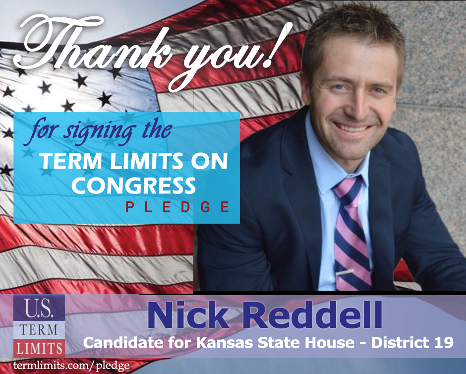 The U.S. Term Limits pledge is provided to candidates and members of state legislatures. It reads, “I pledge that, as a member of the state legislature, I will cosponsor, vote for, and defend the resolution applying for an Article V convention for the limited purpose of enacting term limits on Congress.”