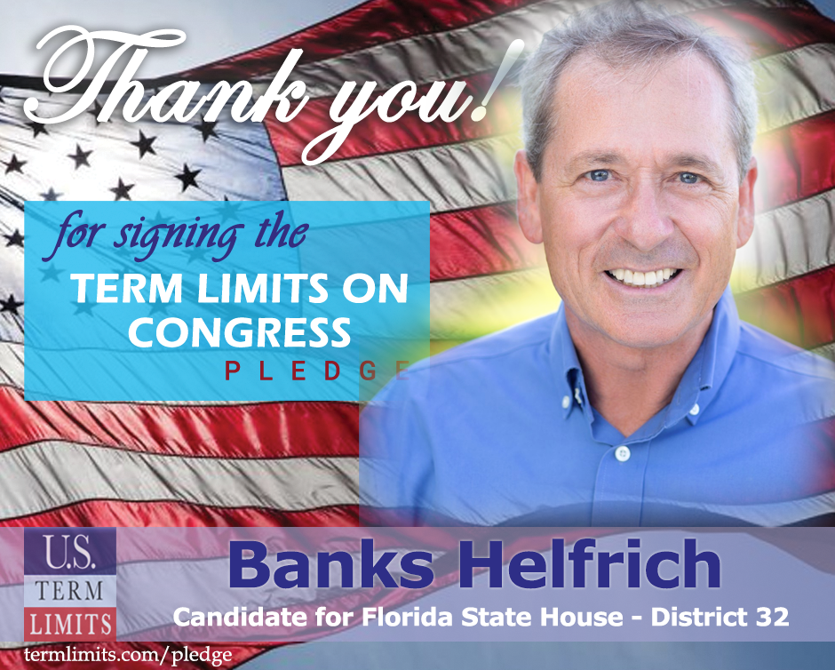 The U.S. Term Limits pledge is provided to candidates and members of state legislatures. It reads, “I pledge that, as a member of the state legislature, I will cosponsor, vote for, and defend the resolution applying for an Article V convention for the limited purpose of enacting term limits on Congress.”