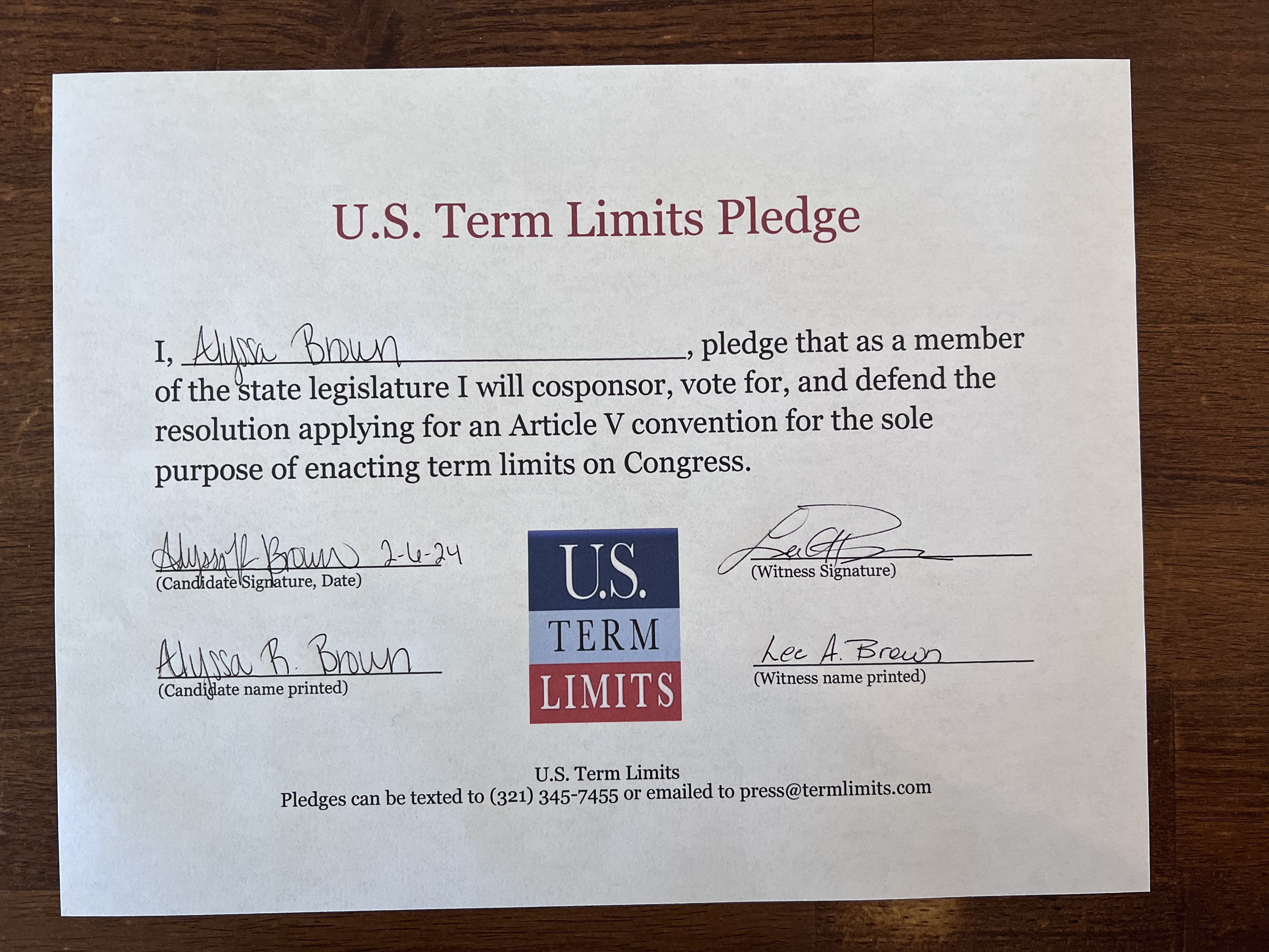 Alyssa Brown Pledges to Support Congressional Term Limits