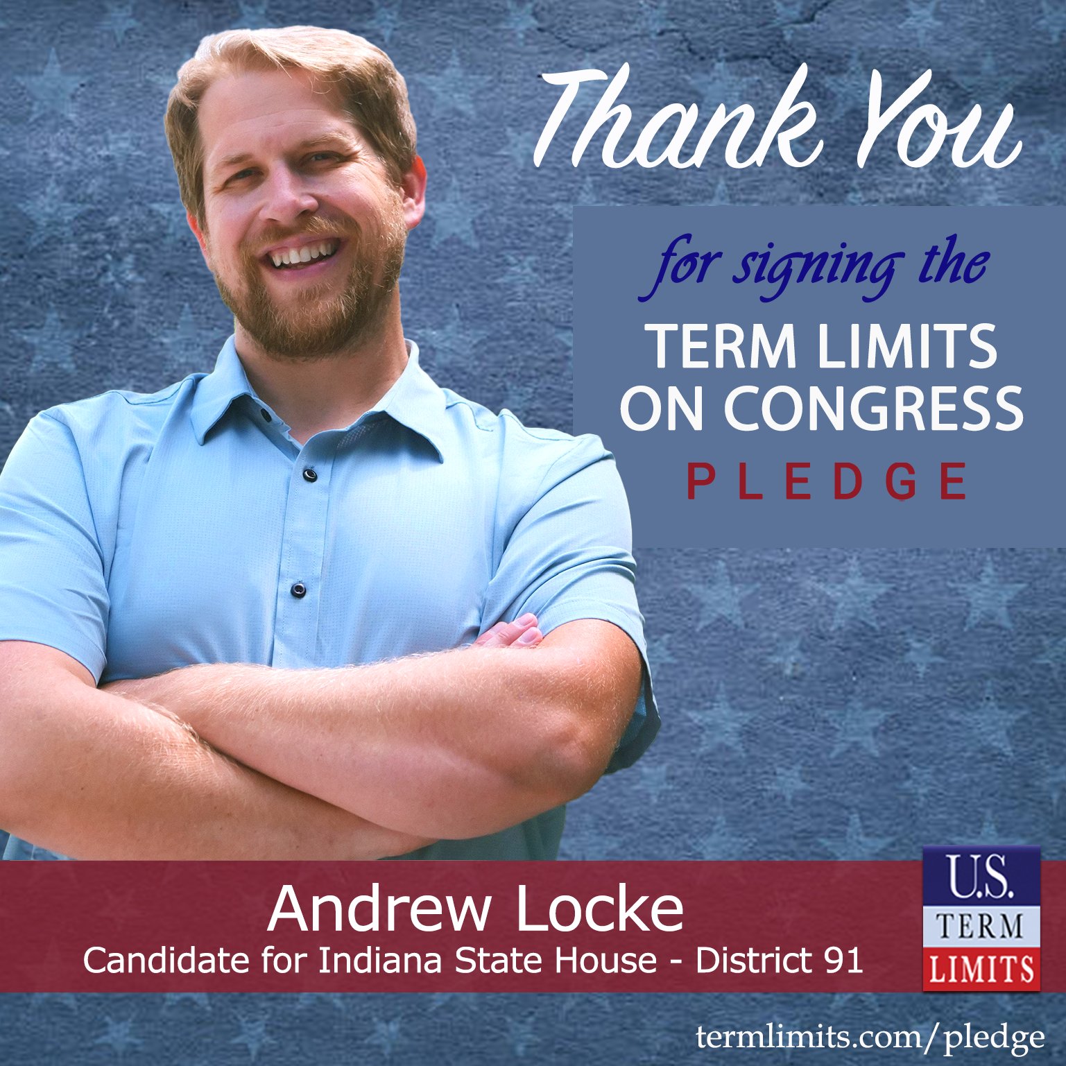 Indianapolis, IN – U.S. Term Limits (USTL), the leader in the national, non-partisan movement to limit terms for elected officials, is gathering support from state lawmakers across the nation. Its mission is to get 34 states to apply for an amendment proposal convention specific to term limits on Congress. Indiana state house candidate, Andrew Locke (district 91), has committed support for term limits on Congress by signing the Term Limits Convention Pledge. Previously, incumbent Rep. Bob Behning also signed the pledge.