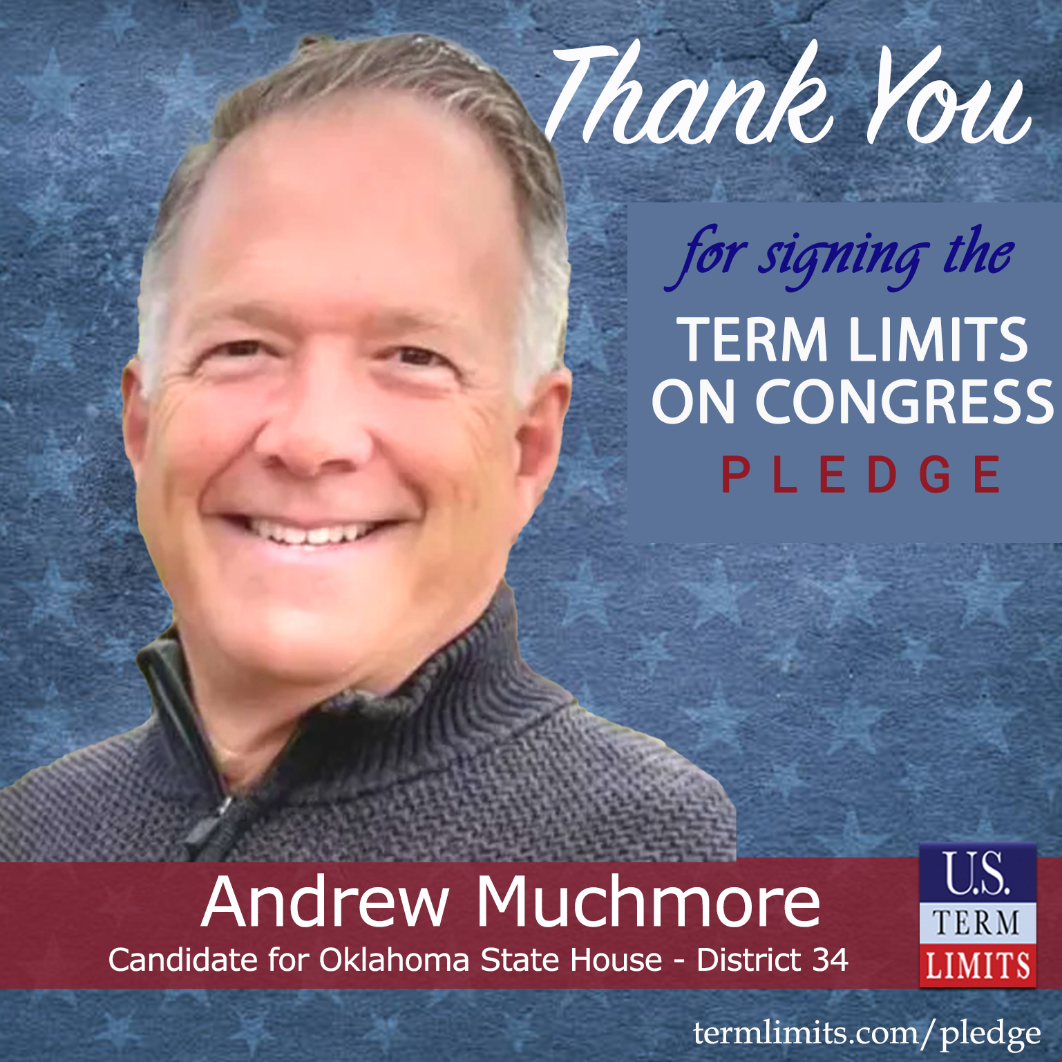 “I am pleased to announce that Andrew has signed the pledge calling for term limits on Congress. With Andrew’s help, we will be able to get the resolution passed in Oklahoma to help restore our founding fathers’ vision of a citizen legislature,” said David Hill, state chair for U.S. Term Limits.