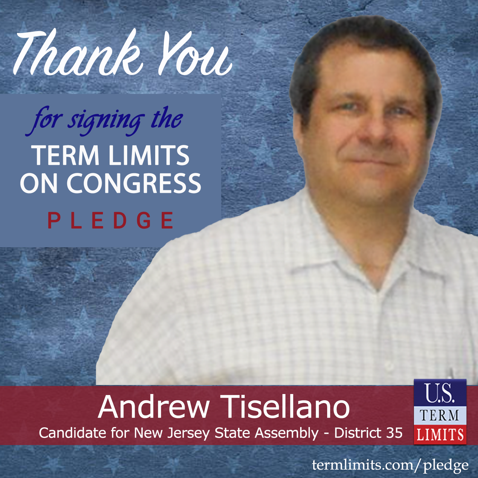 Elmwood Park, NJ – U.S. Term Limits (USTL), the leader in the national, non-partisan movement to limit terms for elected officials, is gathering support from state lawmakers across the nation. Its mission is to get 34 states to apply for an amendment proposal convention specific to term limits on Congress. 2025 New Jersey state of assembly candidate, Andrew Tisellano (district 35), has committed support for term limits on Congress by signing the term limits convention pledge. Tisellano is the first signer in this race.