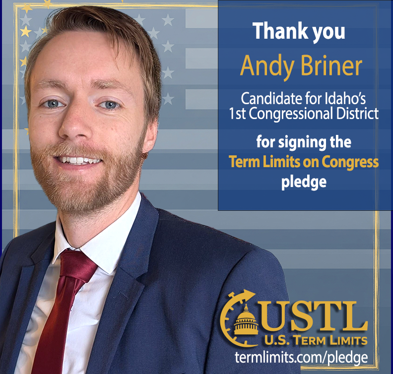 Washington D.C. – U.S. Term Limits (USTL), the leader in the non-partisan national movement to limit terms for elected officials, praises 2022 U.S. house candidate for Idaho, Andy Briner (district 1), for signing the pledge for an amendment to term limit Congress. Previously, incumbent Rep. Russ Fulcher also signed.