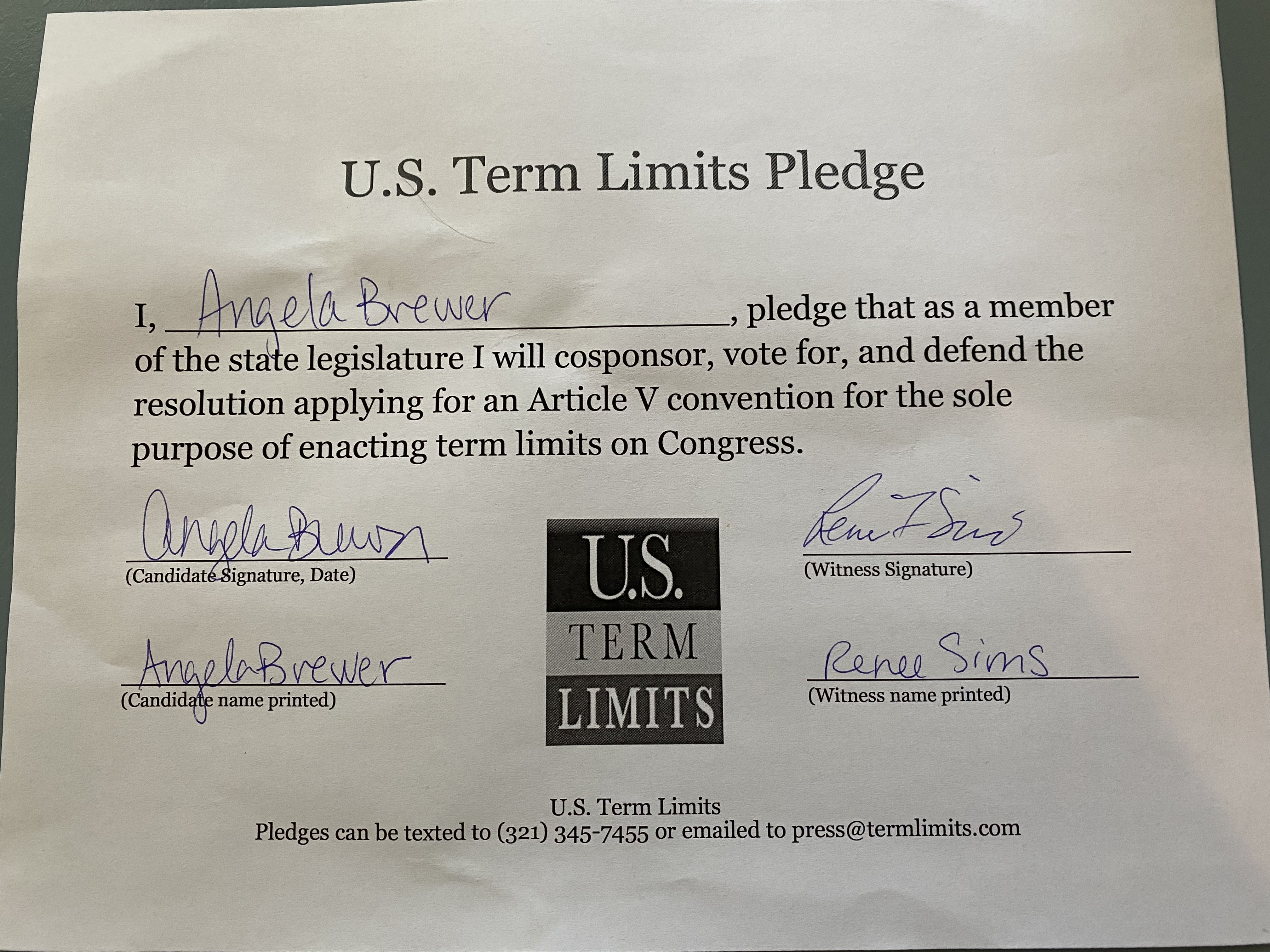 Angela Brewer Pledges to Support Congressional Term Limits