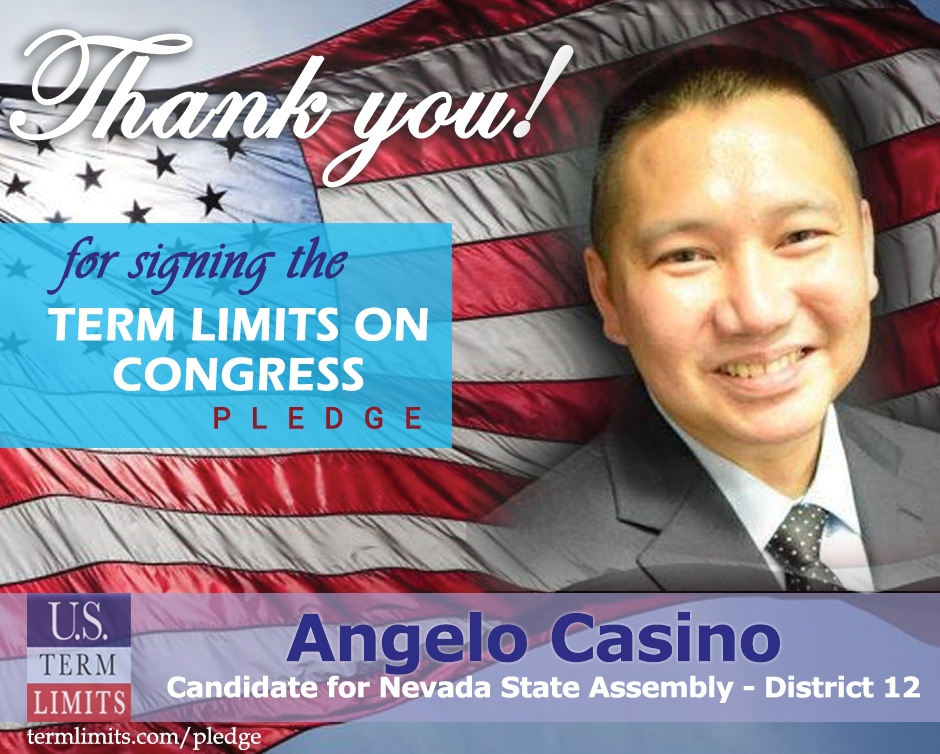 Las Vegas, NV – U.S. Term Limits (USTL), the leader in the national, non-partisan movement to limit terms for elected officials, is gathering support from state lawmakers across the nation. Its mission is to get 34 states to apply for an amendment proposal convention specific to term limits on Congress. Nevada state assembly candidate, Angelo Casino (district 12) has committed support for term limits on Congress by signing the Term Limits Convention pledge. Casino is the first signer in this race.