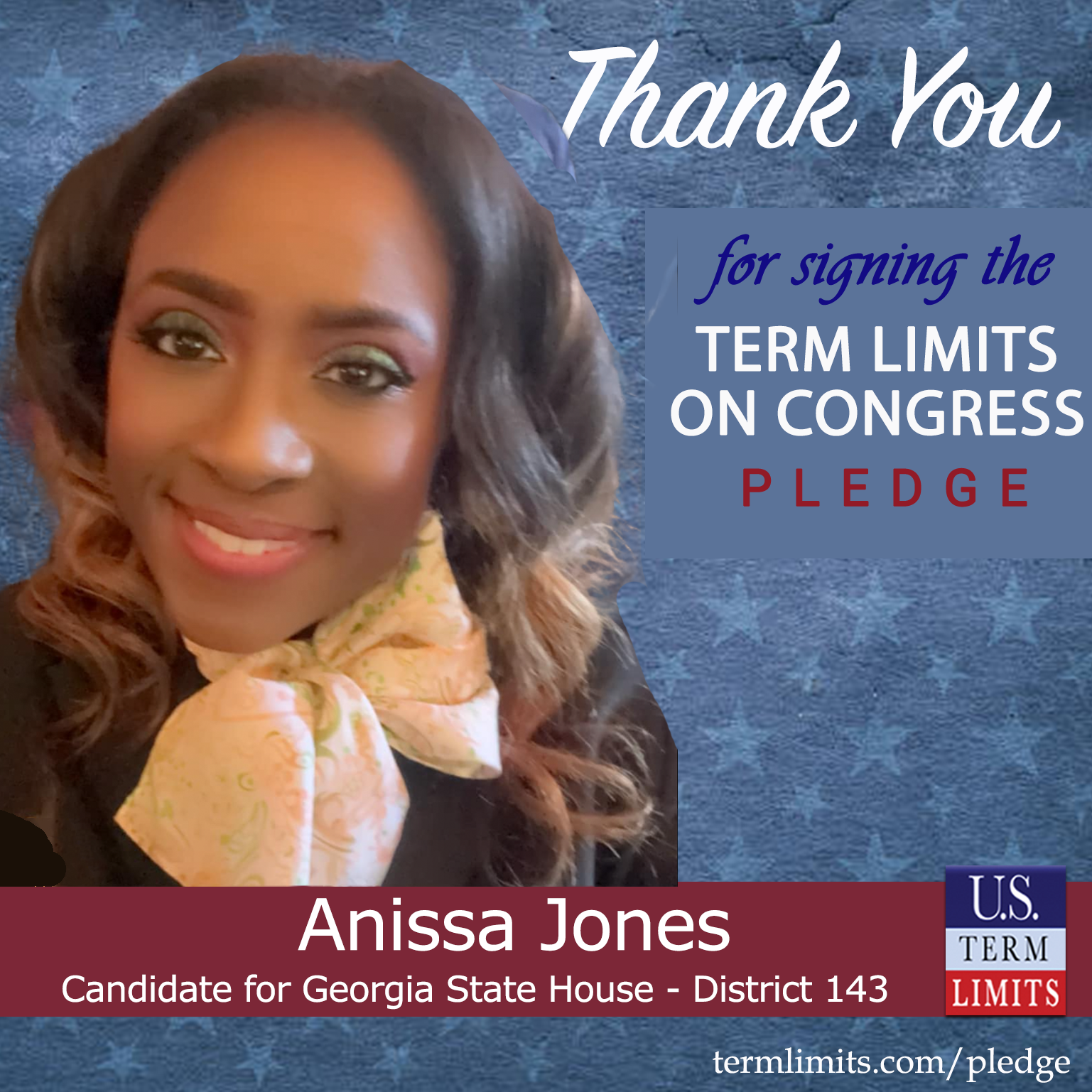 Macon, GA – U.S. Term Limits (USTL), the leader in the national, non-partisan movement to limit terms for elected officials, is gathering support from state lawmakers across the nation. Its mission is to get 34 states to apply for an amendment proposal convention specific to term limits on Congress. Georgia state house candidate, Anissa Jones (District 143), has committed support for term limits on Congress by signing the term limits convention pledge. Jones is the first signer in this race.