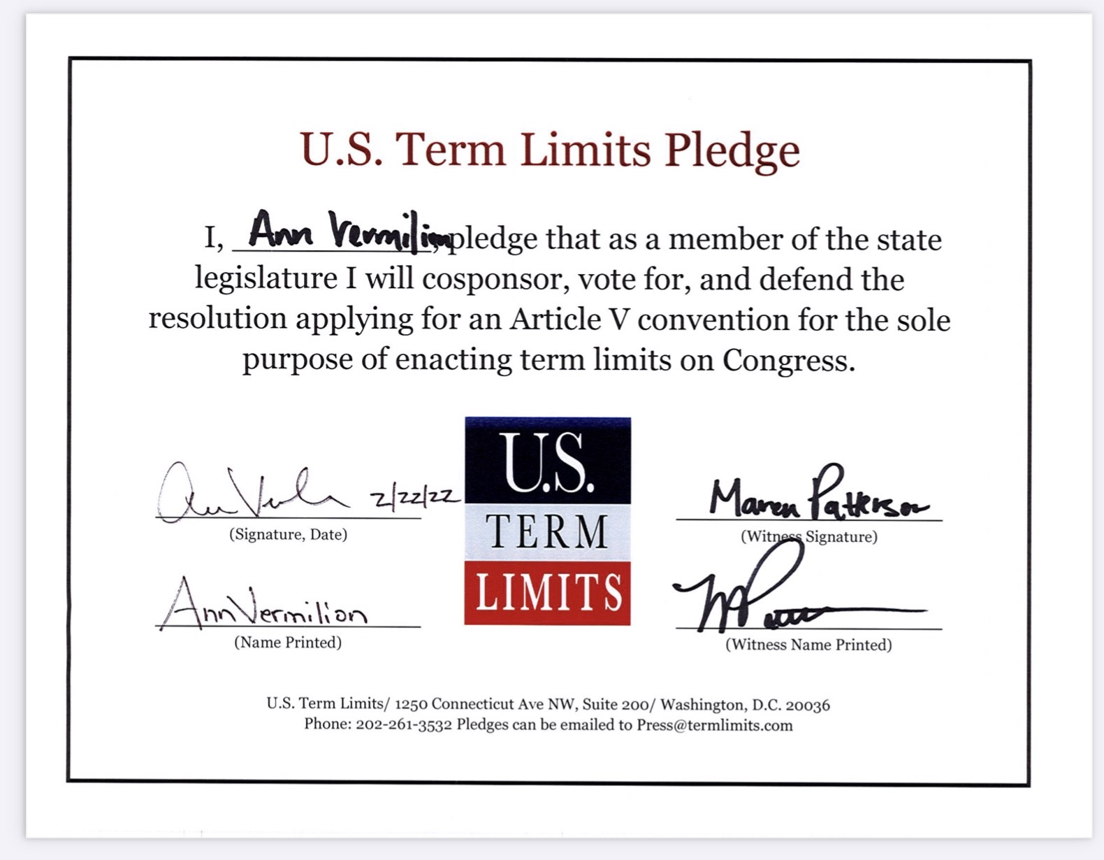 Rep. Ann Vermilion Pledges to Support Congressional Term Limits
