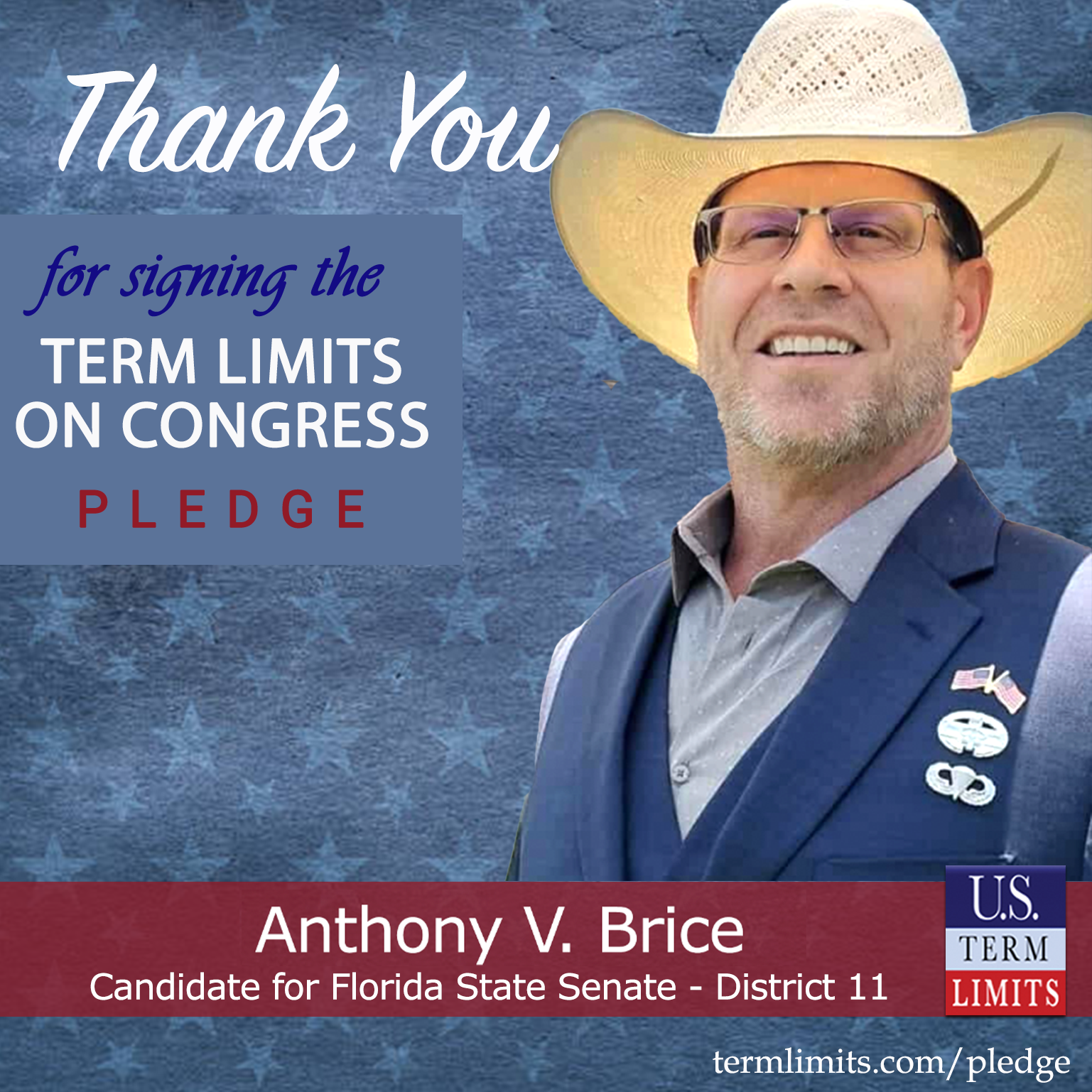 Spring Hill, FL – U.S. Term Limits (USTL), the leader in the national, non-partisan movement to limit terms for elected officials, is gathering support from state lawmakers across the nation. Its mission is to get 34 states to apply for an amendment proposal convention specific to term limits on Congress. 2025 Florida state senate candidate, Anthony Brice (district 11), has committed support for term limits on Congress by signing the term limits convention pledge. The special election is scheduled for September 30, 2025.