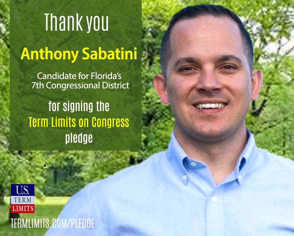 Washington D.C. – U.S. Term Limits (USTL), the leader in the non-partisan national movement to limit terms for elected officials, praises 2022 U.S. house candidate for Florida, Anthony Sabatini (district 7), for signing the pledge for an amendment to term limit Congress. Sabatini is the first signer in this race.
