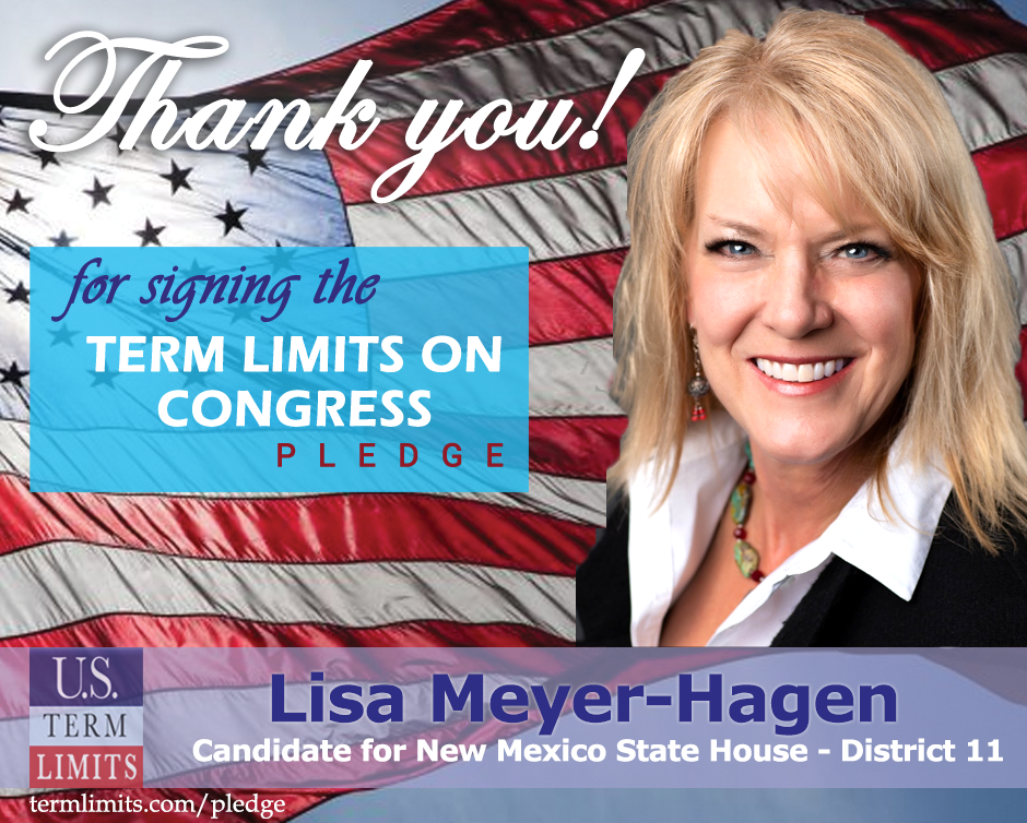 The U.S. Term Limits amendment pledge is provided to every announced candidate for federal office. It reads, “I pledge that as a member of Congress, I will cosponsor and vote for the U.S. Term Limits amendment of three (3) two-year House terms and two (2) six-year Senate terms and no longer limit.”