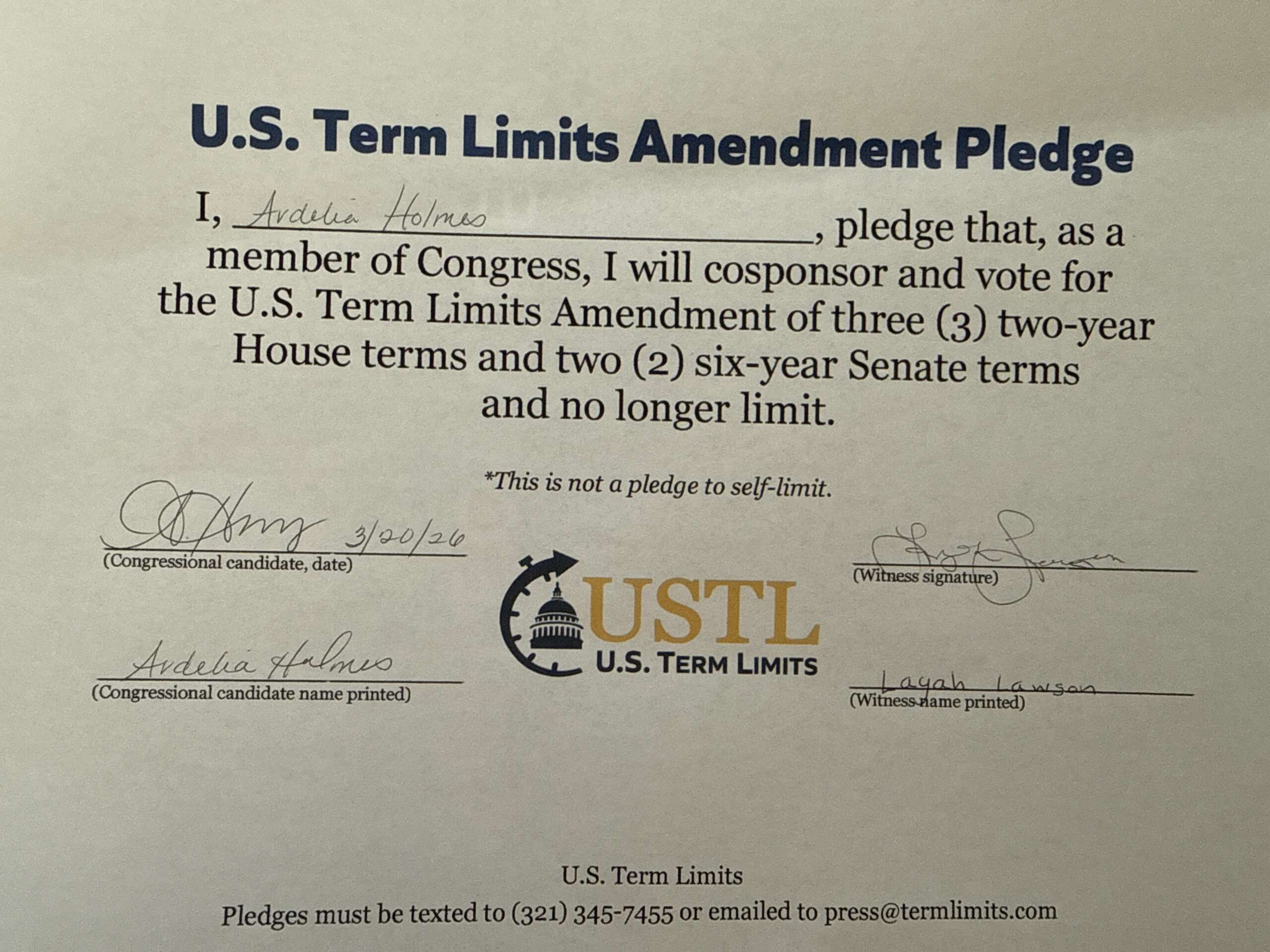 Ardelia Holmes Pledges to Support Congressional Term Limits