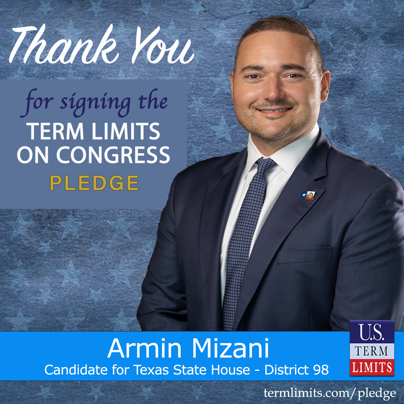 Grapevine, TX – U.S. Term Limits (USTL), the leader in the national, non-partisan movement to limit terms for elected officials, is gathering support from state lawmakers across the nation. Its mission is to get 34 states to apply for an amendment proposal convention specific to term limits on Congress. 2026 Texas state house candidate, Armin Mizani (district 98), has committed support for term limits on Congress by signing the term limits convention pledge.