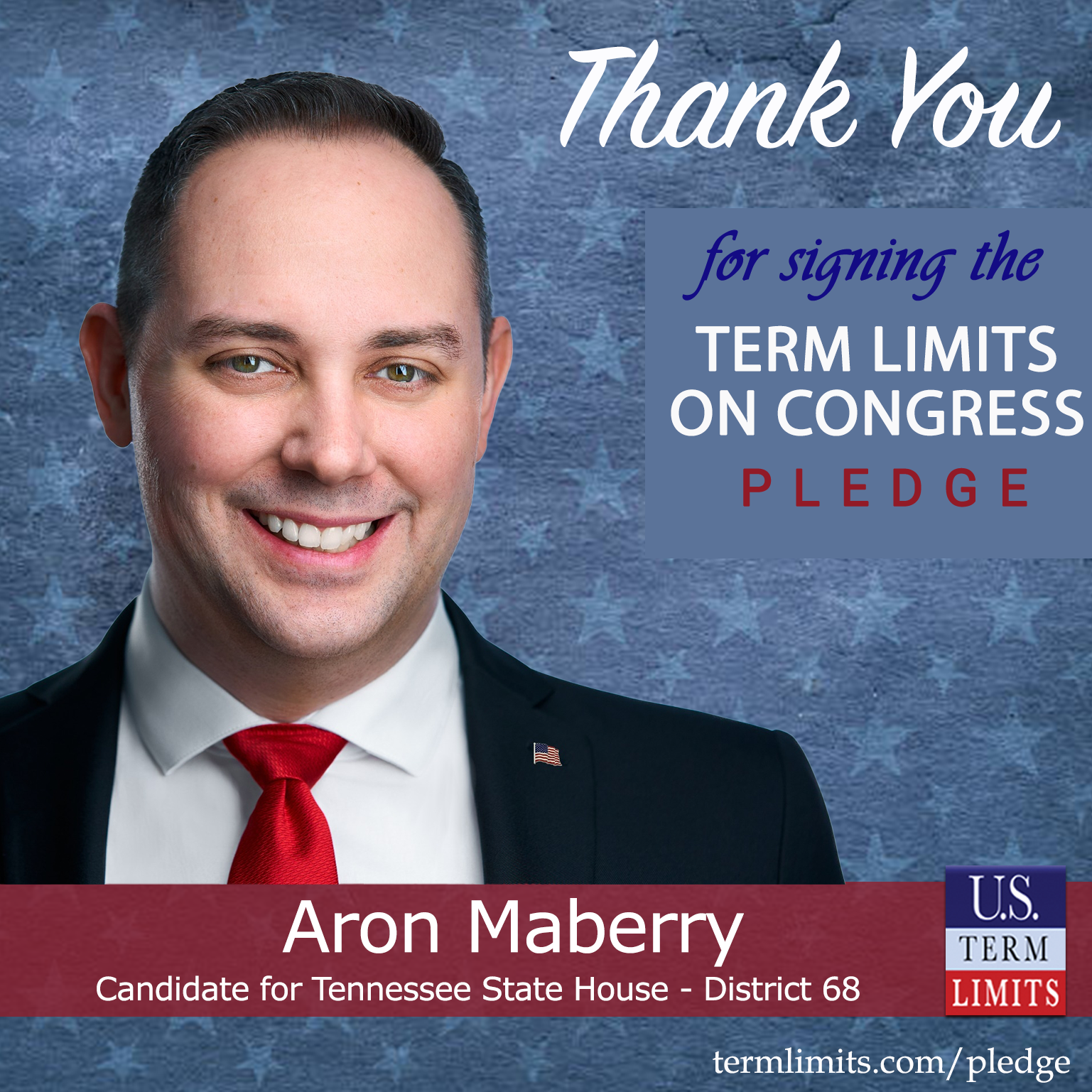 Nashville, TN – U.S. Term Limits (USTL), the leader in the national, non-partisan movement to limit terms for elected officials, is gathering support from state lawmakers across the nation. Its mission is to get 34 states to apply for an amendment proposal convention specific to term limits on Congress. Tennessee state house candidate, Aron Maberry (District 68), has committed support for term limits on Congress by signing the Term Limits Convention Pledge.