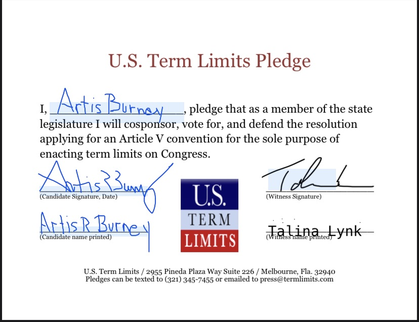 Artis Burney Pledges to Support Congressional Term Limits