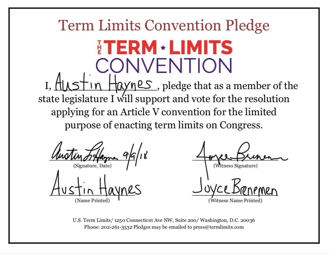 U.S. Term Limits Praises Austin Haynes for Signing Pledge