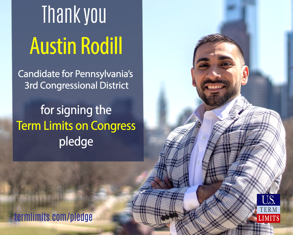 Washington D.C. – U.S. Term Limits (USTL), the leader in the non-partisan national movement to limit terms for elected officials, praises 2022 U.S. house candidate for Pennsylvania, Austin Rodill (district 3), for signing the pledge for an amendment to term limit Congress. Rodill is the first signer in this race.