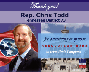 For immediate release January 7th, 2021 Contact: Aaron Dukette, U.S. Term Limits Phone: 859-779-0181 adukette@termlimits.com Rep. Chris Todd files resolution to term limit Congress Washington, D.C. — State representative Chris Todd has pre-filed a resolution (HJR8) for Tennessee to join other states in calling for a convention for proposing a congressional term limits amendment to