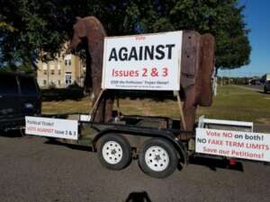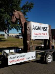 Media Advisory Vote AGAINST Issue 2 & Issue 3 October 22, 2020 Contact: David Lindsay (501) 681-9091 river1962@gmail.com 10-ft Tall Trojan Horse Coming to Texarkana, El Dorado & Magnolia, AR Grassroots coalition opposes Issue 2 and Issue 3, the politicians’ attempt to trick voters into weakening term limits and wrecking the citizen petition process “Issue