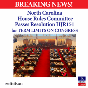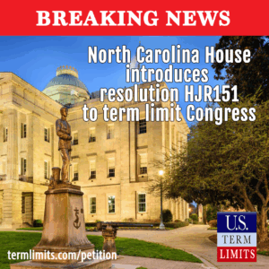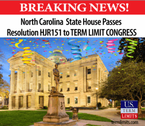 For immediate release March 8, 2023 Contact: Scott Tillman, U.S. Term Limits Phone: (321) 345-7455 stillman@termlimits.com North Carolina House Passes Resolution to Term Limit Congress Raleigh, NC — The North Carolina House just passed House Joint Resolution 151 (HJR151) for term limits on Congress, sponsored by Speaker Tim Moore. The resolution would memorialize the state’s