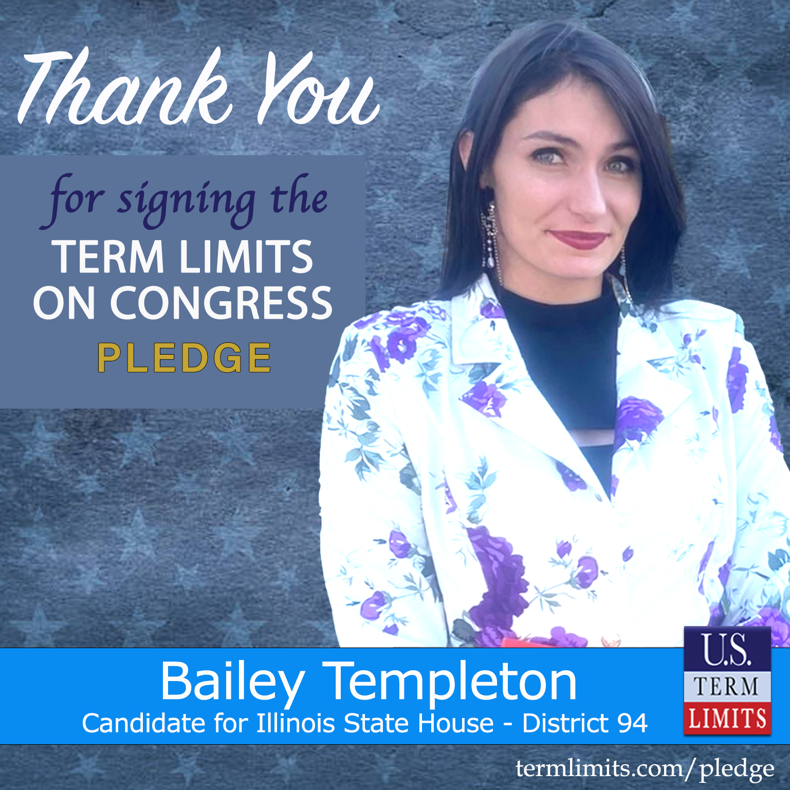 Burlington, IL – U.S. Term Limits (USTL), the leader in the national, non-partisan movement to limit terms for elected officials, is gathering support from state lawmakers across the nation. Its mission is to get 34 states to apply for an amendment proposal convention specific to term limits on Congress. 2026 Illinois state house candidate, Bailey Templeton (district 94), has committed support for term limits on Congress by signing the term limits convention pledge. Previously, candidate Joshua Higgins also signed the pledge.