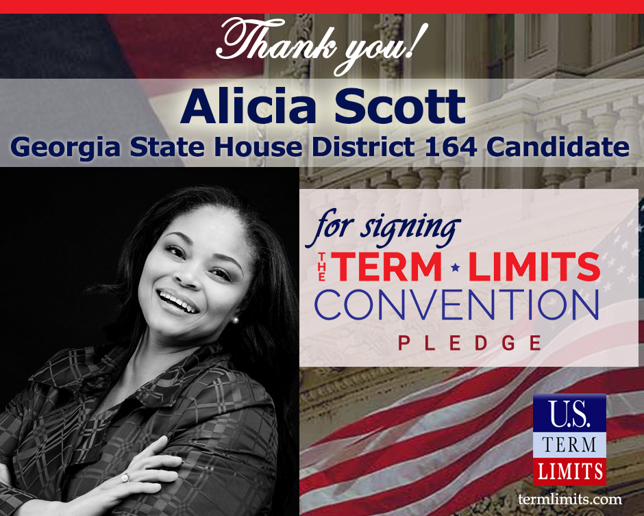 The U.S. Term Limits pledge is provided to candidates and members of state legislatures. It reads, “I pledge that, as a member of the state legislature, I will cosponsor, vote for, and defend the resolution applying for an Article V convention for the limited purpose of enacting term limits on Congress.”