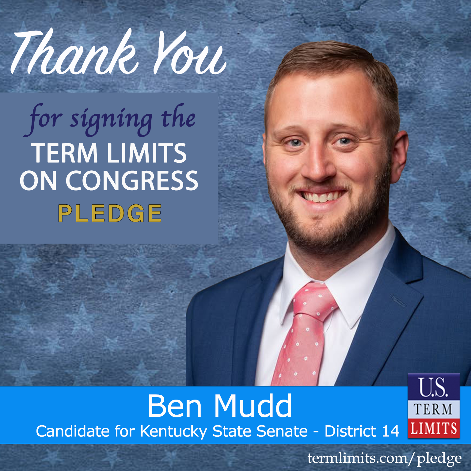 Bardstown, KY – U.S. Term Limits (USTL), the leader in the national, non-partisan movement to limit terms for elected officials, is gathering support from state lawmakers across the nation. Its mission is to get 34 states to apply for an amendment proposal convention specific to term limits on Congress. 2026 Kentucky state senate candidate, Ben Mudd (district 14), has committed support for term limits on Congress by signing the term limits convention pledge.