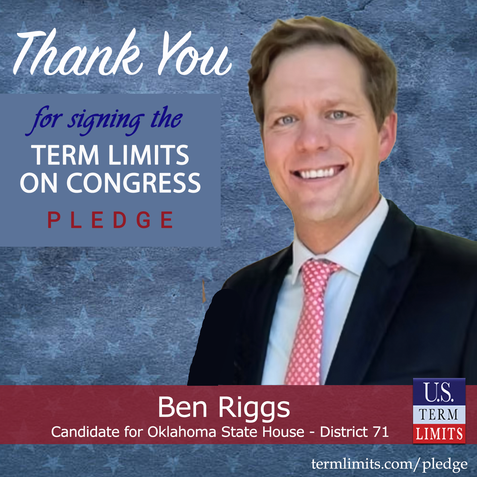 Tulsa, OK – U.S. Term Limits (USTL), the leader in the national, non-partisan movement to limit terms for elected officials, is gathering support from state lawmakers across the nation. Its mission is to get 34 states to apply for an amendment proposal convention specific to term limits on Congress. 2025 Oklahoma state house candidate, Ben Riggs (district 71), has committed support for term limits on Congress by signing the term limits convention pledge. Previously, candidate Beverly Atteberry also signed the pledge. The special primary election is scheduled for April 1, 2025.