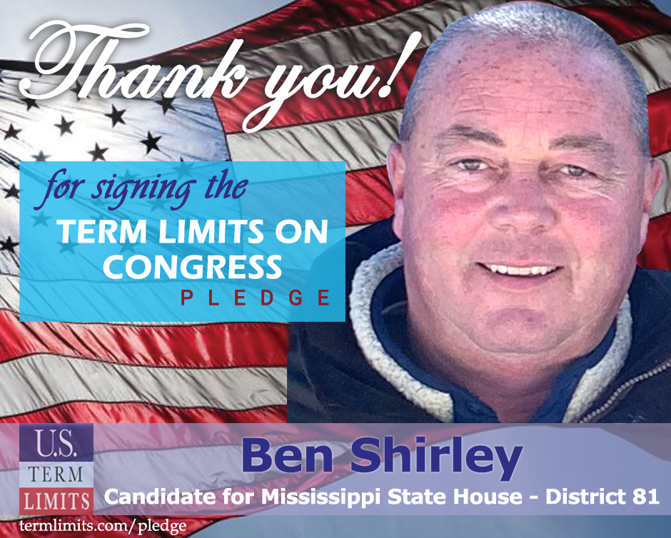 Meridien, MS – U.S. Term Limits (USTL), the leader in the national, non-partisan movement to limit terms for elected officials, is gathering support from state lawmakers across the nation. Its mission is to get 34 states to apply for an amendment proposal convention specific to term limits on Congress. Mississippi state house candidate, Ben Shirley (district 81), has committed support for term limits on Congress by signing the Term Limits Convention pledge. The primary election is scheduled for August 8, 2023.