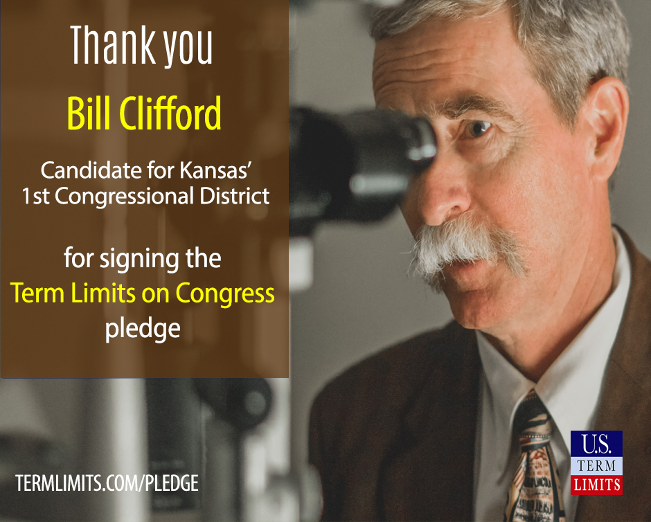 Washington, DC – U.S. Term Limits (USTL), the leader in the non-partisan national movement to limit terms for elected officials, praises 2020 U.S. house candidate for Kansas (district 1), Bill Clifford, for signing the pledge for an amendment to term limit Congress. Clifford is the first signer in this race. The KS CD-01 election is scheduled for August 4, 2020.