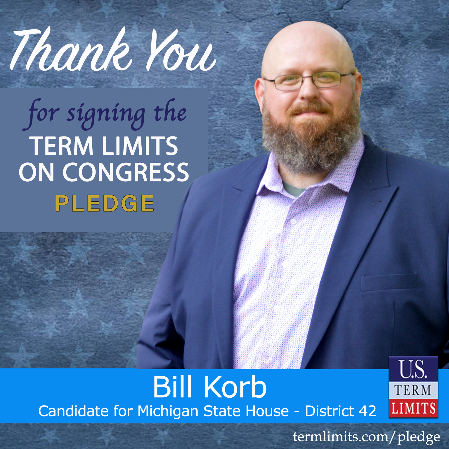Vicksburg, MI – U.S. Term Limits (USTL), the leader in the national, non-partisan movement to limit terms for elected officials, is gathering support from state lawmakers across the nation. Its mission is to get 34 states to apply for an amendment proposal convention specific to term limits on Congress. 2026 Michigan state house candidate, Bill Korb (district 42), has committed support for term limits on Congress by signing the term limits convention pledge.