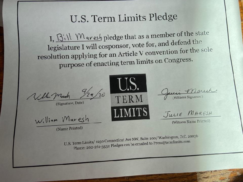 USTL President, Philip Blumel, commented on Maresh’s pledge saying, “Bill’s support of term limits shows that there are individuals who are willing to listen to the majority of voters who want term limits. America needs a Congress that will be served by citizen legislators, not career politicians.”