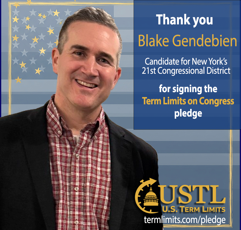 Washington D.C. – U.S. Term Limits (USTL), the leader in the non-partisan national movement to limit terms for elected officials, praises 2026 U.S. Representative candidate for New York, Blake Gendebien (district 21), for signing the pledge for an amendment to term limit Congress. Previously, candidate Maylon Haller also signed the pledge.