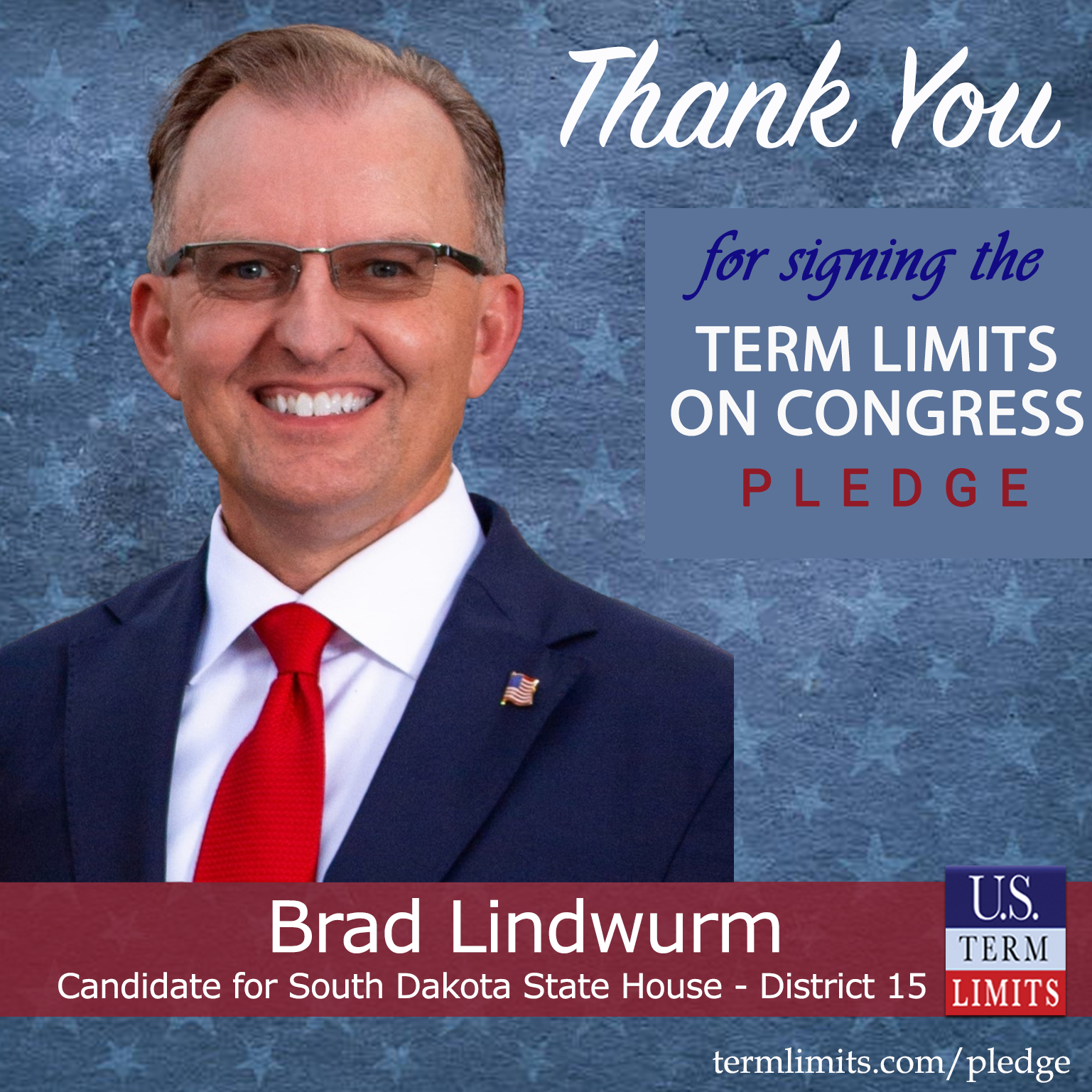 State Chair for U.S. Term Limits, Erin Tobin, commented on Lindwurm’s pledge saying, “Term limits will restore our founding fathers’ vision of a citizen legislature. I am so glad Brad recognizes the need for term limits and has signed our pledge. I know that South Dakota voters will be impressed with his support for term limits.”