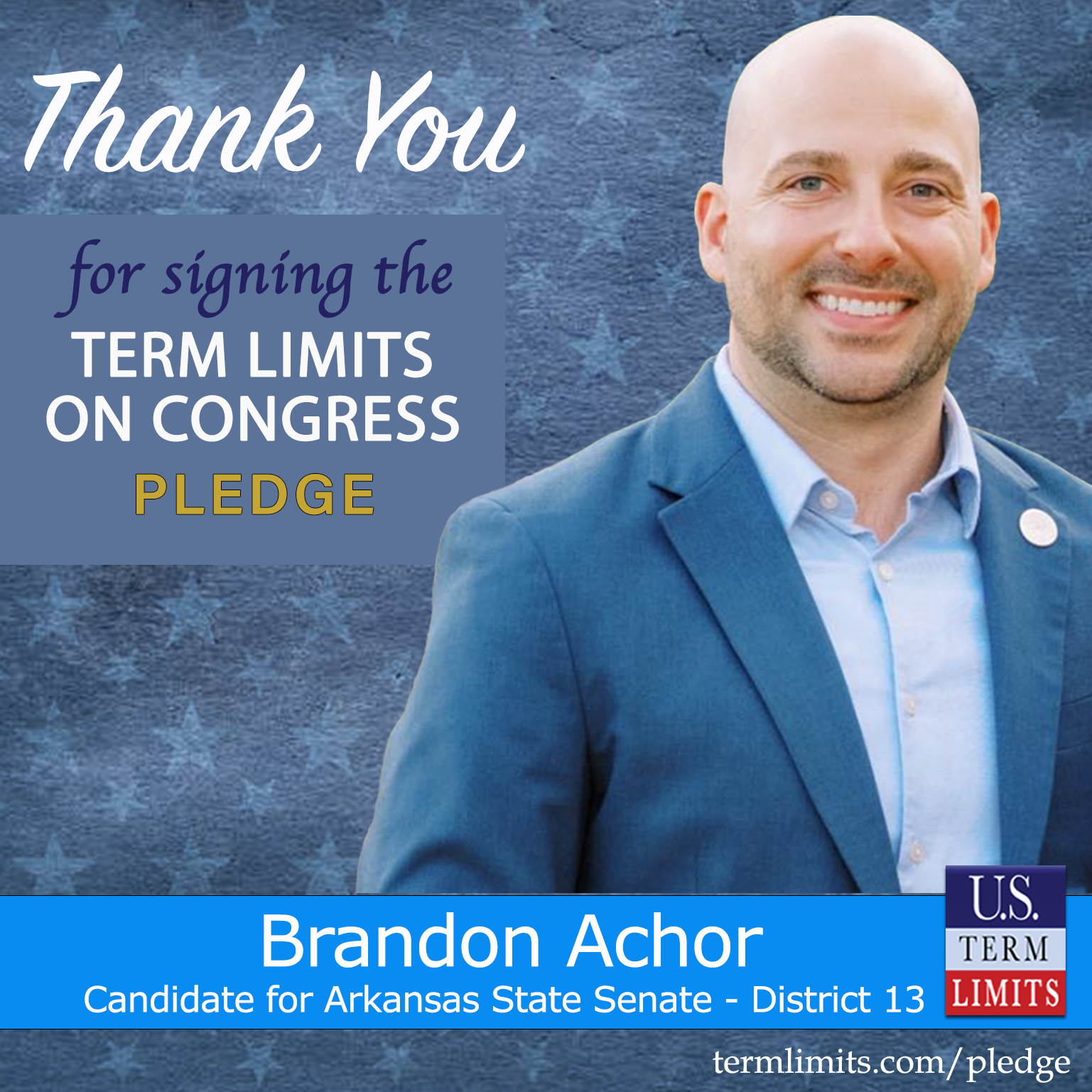 North Little Rock, AR – U.S. Term Limits (USTL), the leader in the national, non-partisan movement to limit terms for elected officials, is gathering support from state lawmakers across the nation. Its mission is to get 34 states to apply for an amendment proposal convention specific to term limits on Congress. 2026 Arkansas state senate candidate, Brandon Achor (district 13), has committed support for term limits on Congress by signing the term limits convention pledge.