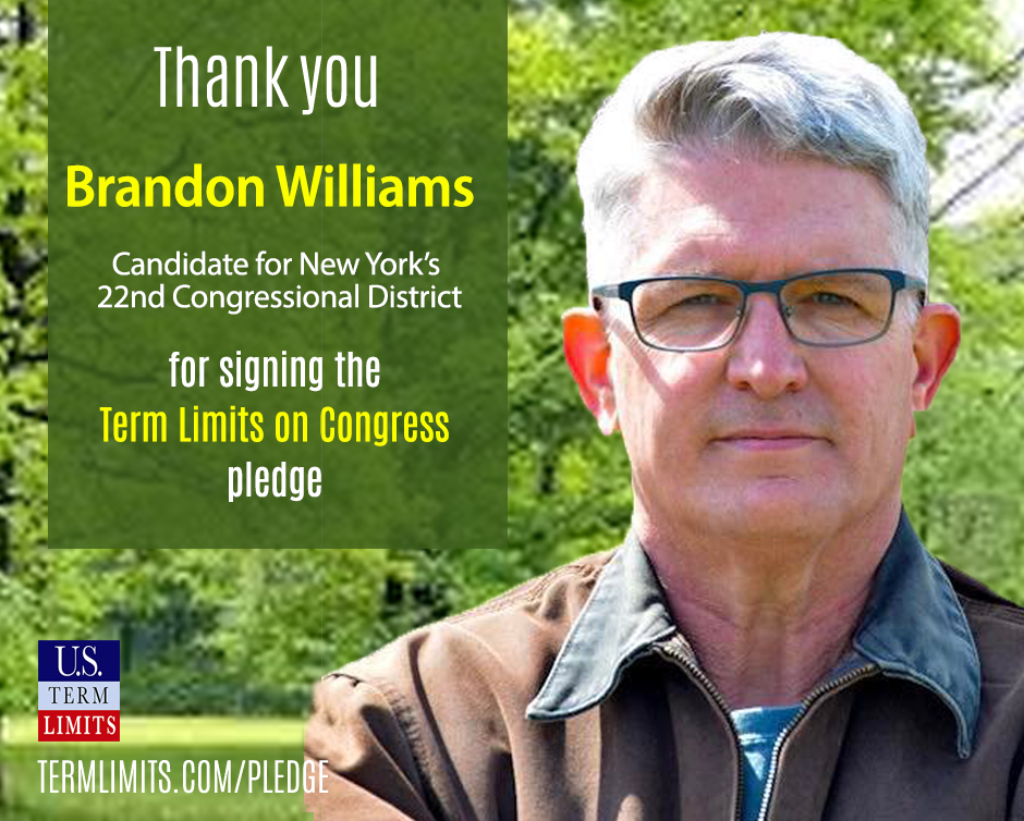 Washington D.C. – U.S. Term Limits (USTL), the leader in the non-partisan national movement to limit terms for elected officials, praises 2022 U.S. house candidate for New York, Brandon Williams (district 22), for signing the pledge for an amendment to term limit Congress. Williams is the first signer in this race.