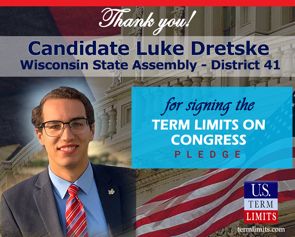The U.S. Term Limits pledge is provided to candidates and members of state legislatures. It reads, “I pledge that, as a member of the state legislature, I will cosponsor, vote for, and defend the resolution applying for an Article V convention for the limited purpose of enacting term limits on Congress.”