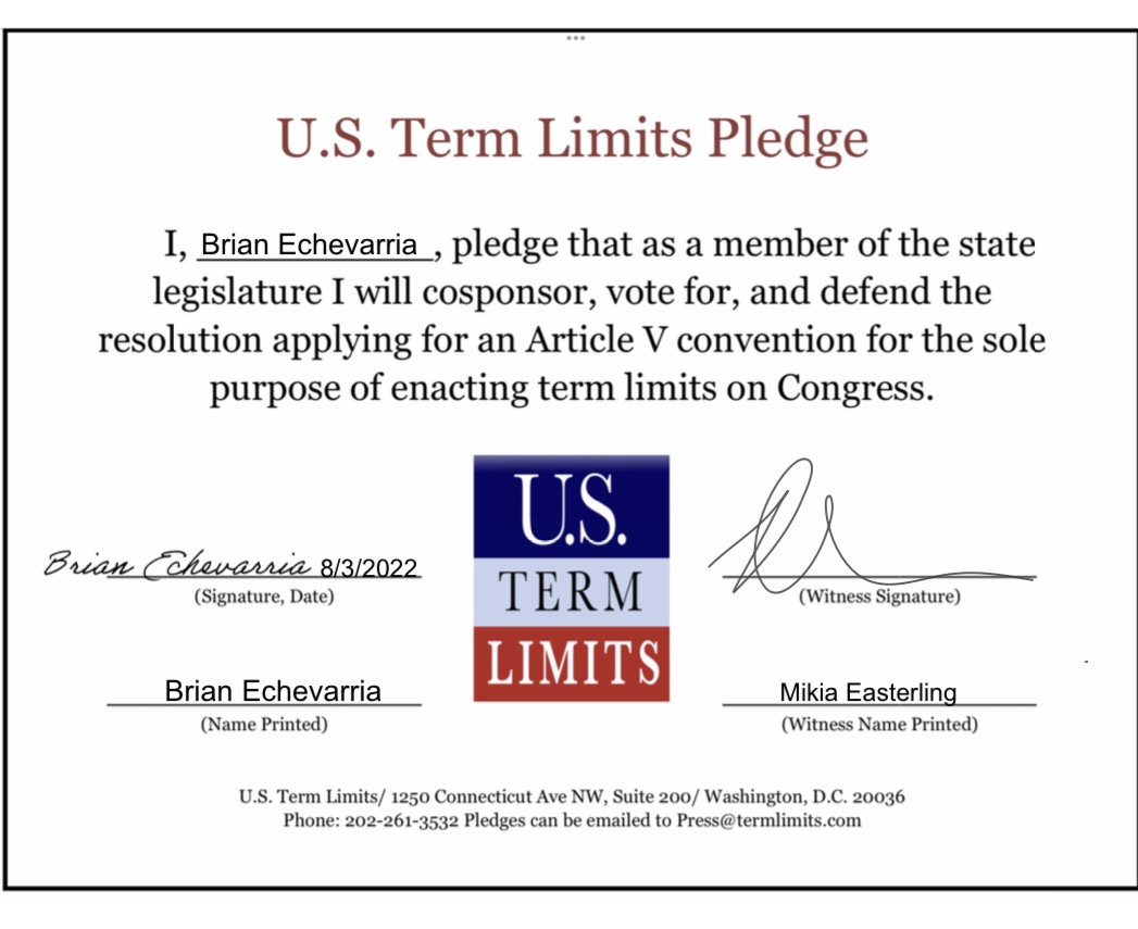 Brian Echevarria Pledges to Support Congressional Term Limits
