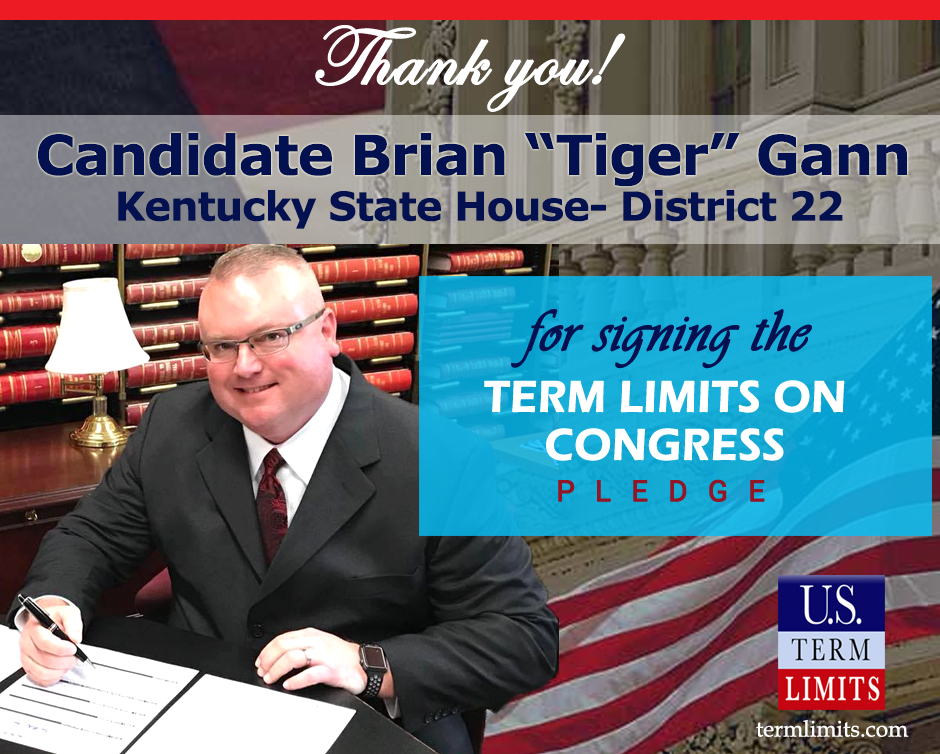 Washington, D.C. – U.S. Term Limits (USTL), the leader in the national, non-partisan movement to limit terms for elected officials, is gathering support from state lawmakers across the nation. Its mission is to get 34 states to apply for an amendment proposal convention specific to term limits on Congress. 2020 Kentucky state house candidate Brian Gann (district 22), has committed support for term limits on Congress by signing the Term Limits Convention pledge. Previously, candidate Tim Miller also signed the pledge. The primary election is scheduled for June 23, 2020.