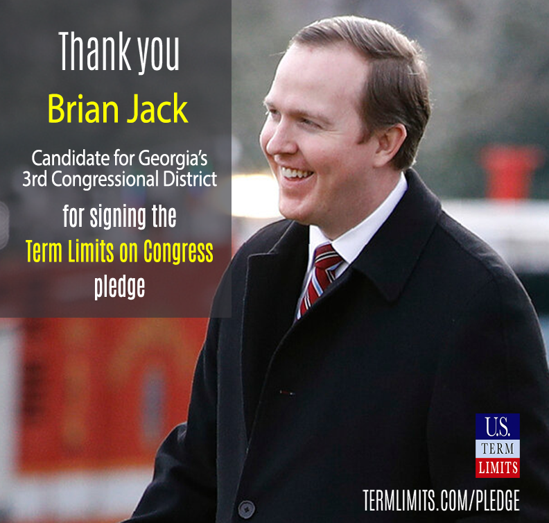 Washington D.C. – U.S. Term Limits (USTL), the leader in the non-partisan national movement to limit terms for elected officials, praises 2024 U.S. House candidate for Georgia, Brian Jack (district 3), for signing the pledge for an amendment to term limit Congress. Previously, candidates Jim Bennett and Philip Singleton also signed the pledge.