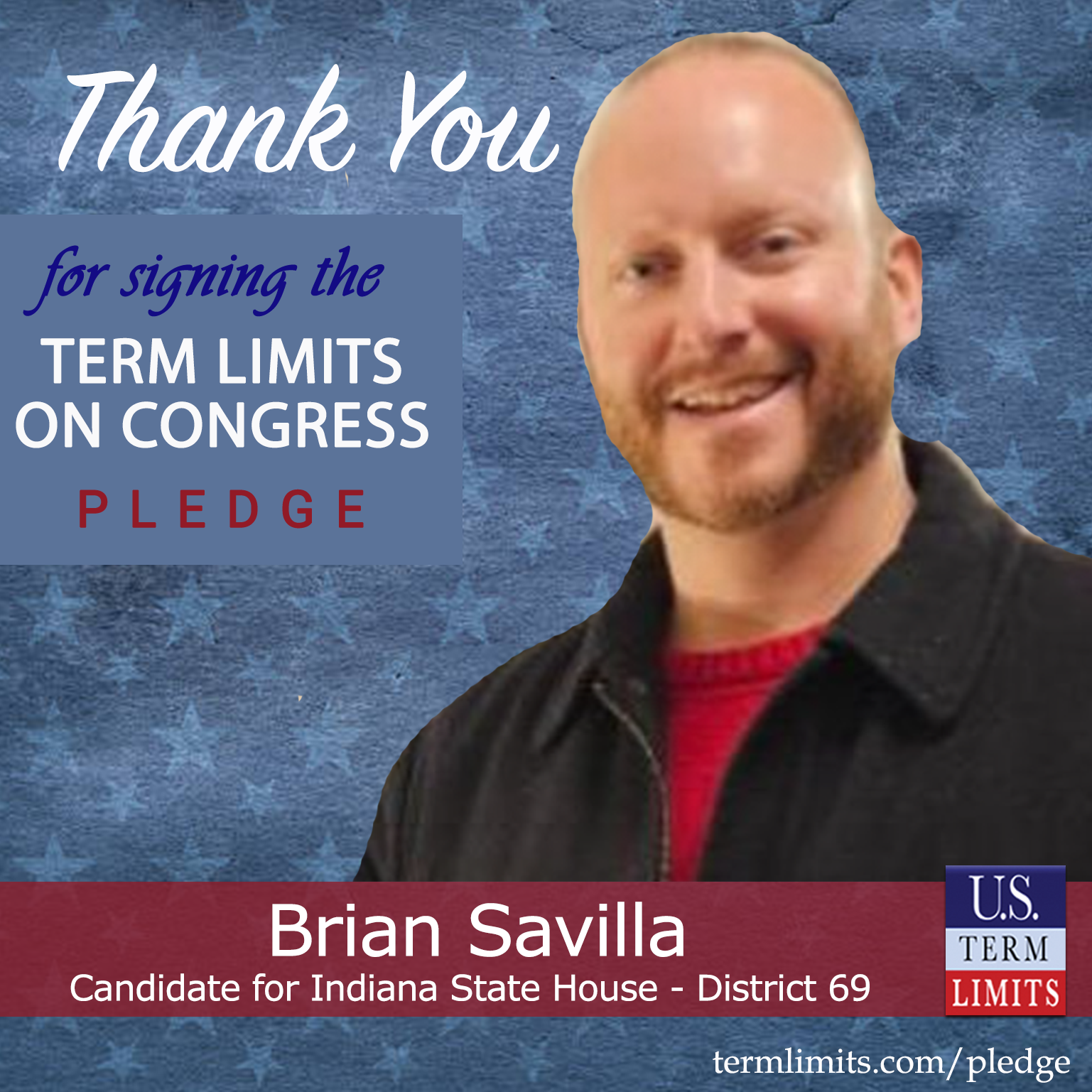 Seymour, IN– U.S. Term Limits (USTL), the leader in the national, non-partisan movement to limit terms for elected officials, is gathering support from state lawmakers across the nation. Its mission is to get 34 states to apply for an amendment proposal convention specific to term limits on Congress. Indiana state house candidate, Brian Savilla (District 69), has committed support for term limits on Congress by signing the term limits convention pledge. Savilla is the first signer in this race.