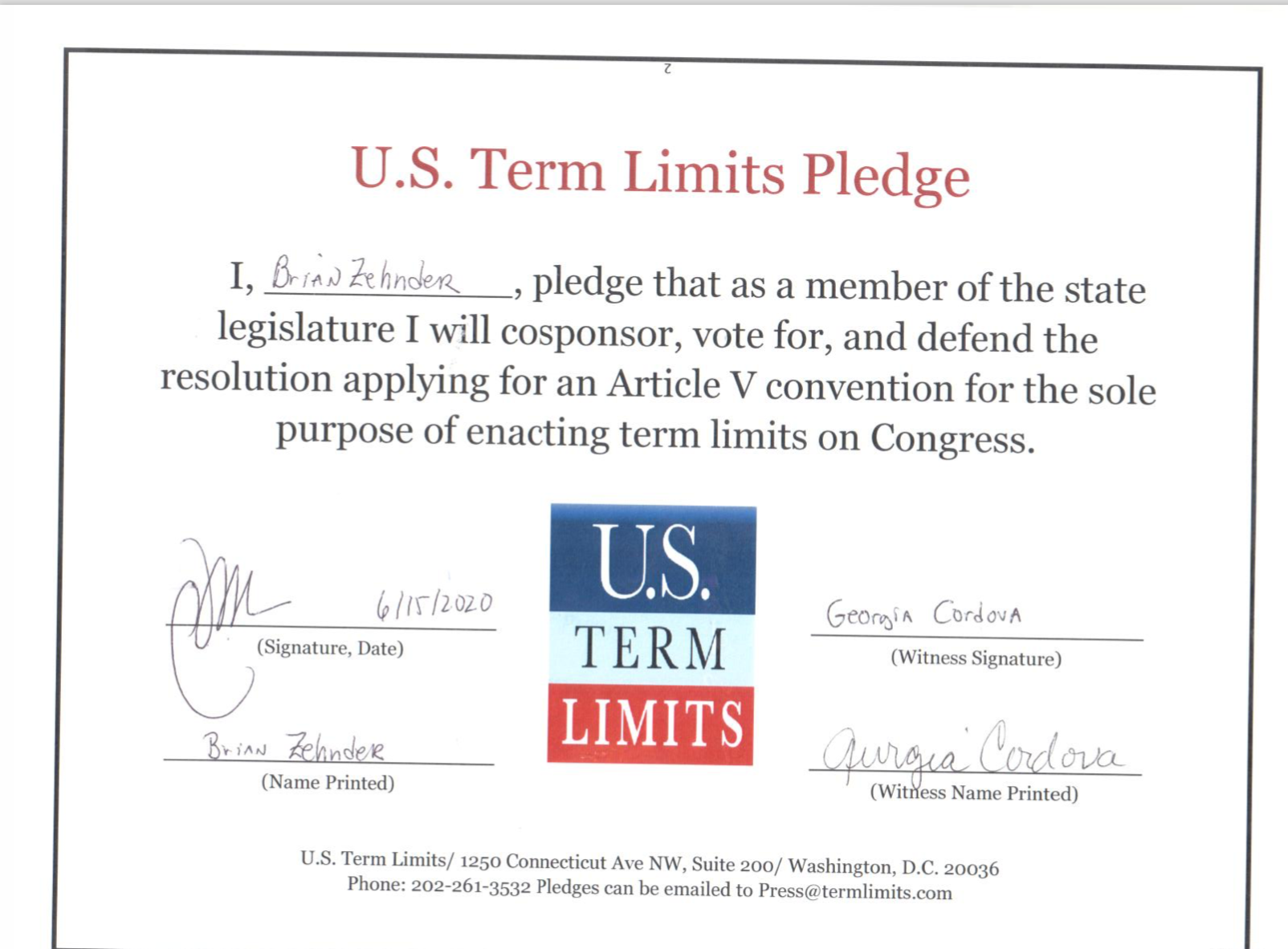 Brian Zehnder Pledges to Support Congressional Term Limits