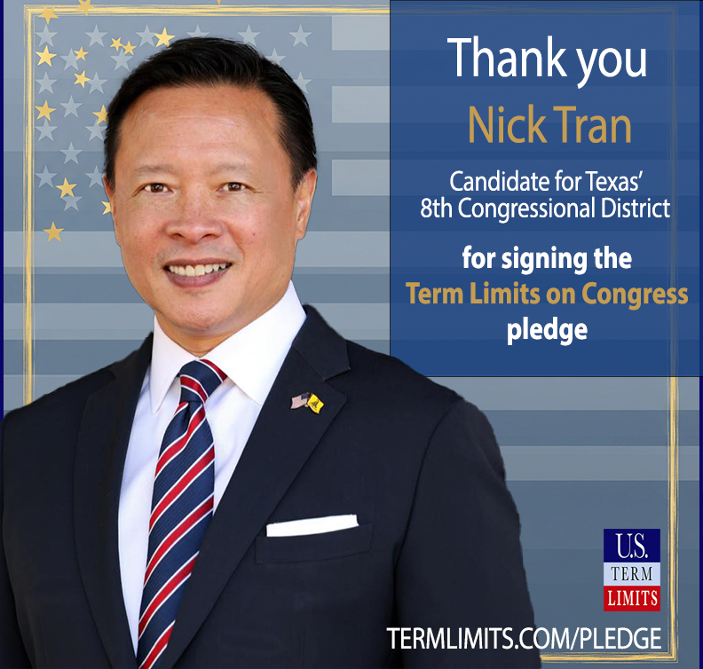 The U.S. Term Limits amendment pledge is provided to every announced candidate for federal office. It reads, “I pledge that as a member of Congress, I will cosponsor and vote for the U.S. Term Limits amendment of three (3) House terms and two (2) Senate terms and no longer limit.” The U.S. Term Limits constitutional amendment has been introduced in both the U.S. Senate by Senator Ted Cruz and his colleagues (SJR3) and the U.S. House by Representative Ralph Norman (HJR12).