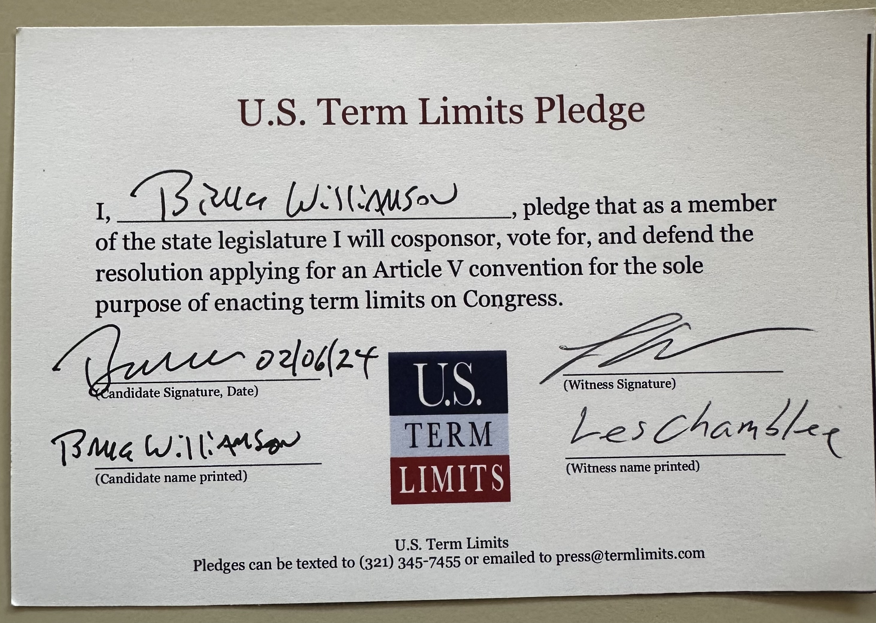 Rep. Bruce Williamson Pledges to Support Congressional Term Limits