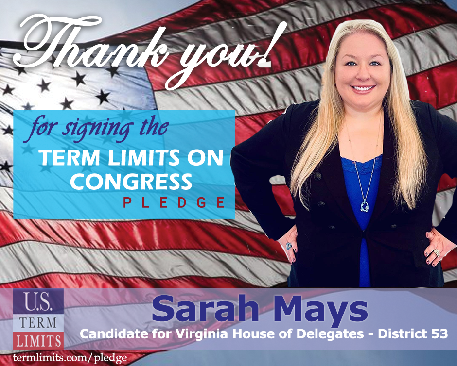 The U.S. Term Limits pledge is provided to candidates and members of state legislatures. It reads, “I pledge that, as a member of the state legislature, I will cosponsor, vote for, and defend the resolution applying for an Article V convention for the sole purpose of enacting term limits on Congress.”